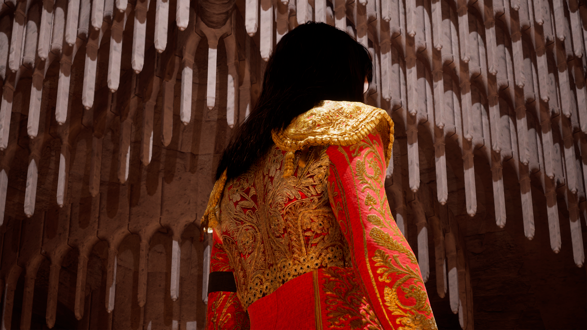 This ending revives the “tragic status of the agent” from ancient narrative while exposing gameplay itself as voluntary servitude: the acceptance of rules imposed by others. But Courtinat’s project extends beyond adapting tragic or existentialist themes. Video game agency raises questions entirely its own. Throughout her practice, composed exclusively of immersive digital works, the artist builds worlds and deconstructs conventions in equal measure. Her sustained attention to player position, cinematic language, and interactive systems produces melancholic universes marked by layered temporalities and sudden eruptions of violence or luminosity. The gesture, however, is twofold. In transforming spectators into players, she also critiques the art world’s own protocols—spaces where we perform viewing as much as we enact parasocial relations.